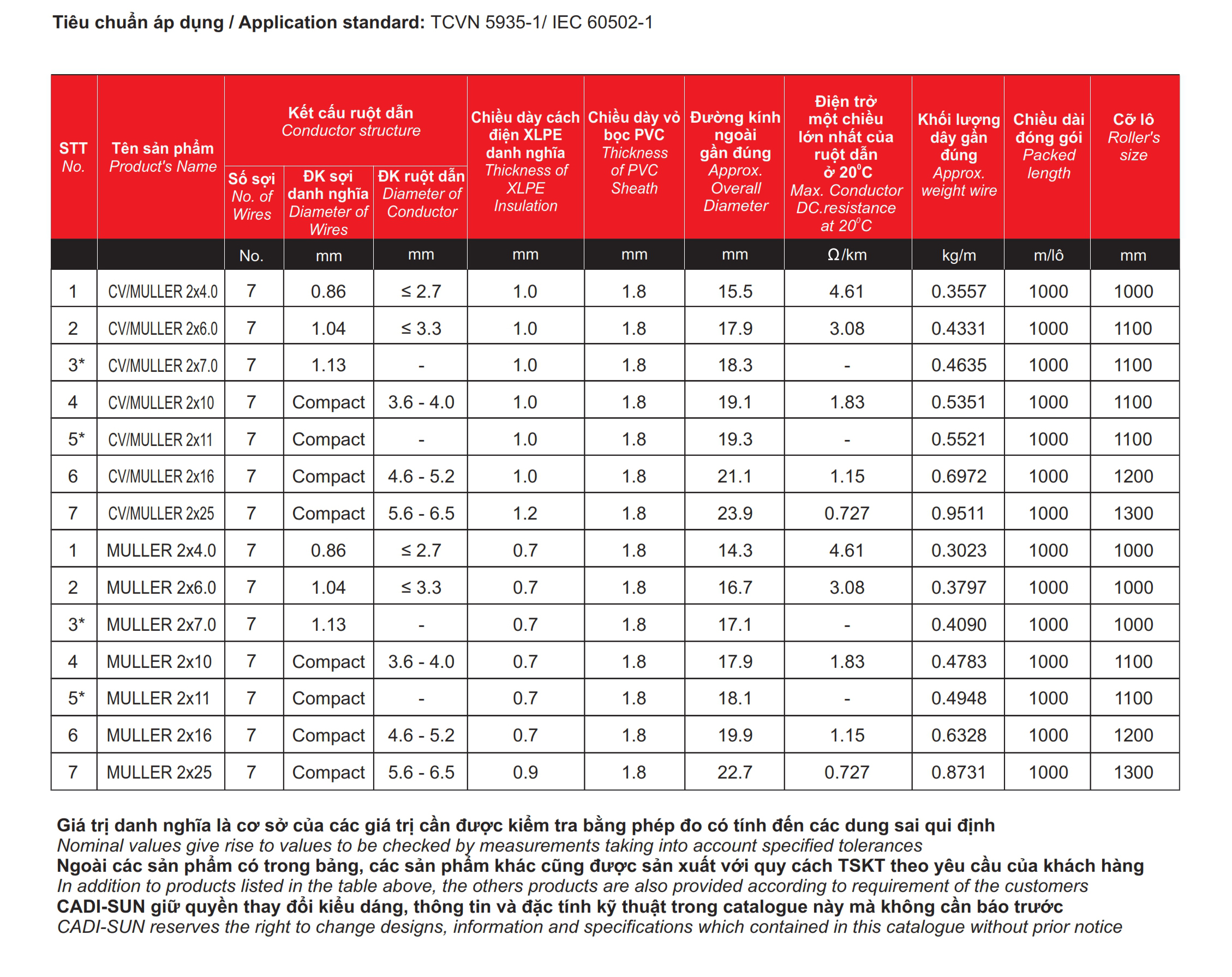 – Ứng dụng: Cáp cấp nguồn cho hòm công tơ có tính năng giảm tổn thất điện năng.
