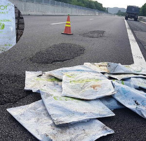 Nhược điểm vật liệu carboncor asphalt Bê tông nhựa nguội do cường độ kém hơn so với bê tông nhựa nóng và thời gian hình thành cường độ kéo dài nên thường chỉ được sử dụng trong sửa chữa vá ổ gà hay phủ mặt các mặt đường cấp thấp, giá thành của vật liệu Carboncor Asphalt hiện nay vẫn đang cao do một số phụ gia dùng cho việc sản xuất carboncor asphalt vẫn đang phải nhập khẩu từ Nam Phi. Thông số kỹ thuật của vật liệu Carboncor Asphalt Khối lượng vật liệu sử dụng Loại đường Diện tích rải được Chiều dày cần rải (sau lu phẳng) Chiều dày cần rải (trước lu phẳng) 1 tấn Đường cấp cao 17.0 m2 30 mm 40 mm 1 tấn Đường chính 19.4 m2 25 mm 35 mm 1 tấn Đường chính 24.0 m2 20 mm 28 mm 1 tấn Đường phụ 34..0 m2 15 mm 20 mm Đối với ổ gà: 1 bao 25kg vật liệu dùng được với 0,85m2 bề mặt với độ dày sau khi đầm lèn là 15mm. Hoặc có thể tính định mức thi công: 1cm/m2 cần dùng 20kg Carboncor Asphalt Cách thức lưu giữ Carboncor Asphalt – Ưu điểm tuyệt vời Do là dạng bao đóng kín nên Sản phẩm có thể được cất giữ trong vòng 12 tháng trong kho, để nơi mát mẻ, tránh ánh sáng mặt trời. Nếu sản phẩm đã bỏ ra ngoài bao bì có thể sử dụng được trong vòng 1 tháng nếu được phủ kín, không được phơi dưới ánh sáng mặt trời. Khi sử dụng, gạt bỏ lớp vật liệu trên cùng, sau đó tưới đều một ít nước và trộn lại trước khi đưa vào sử dụng. Nếu vật liệu dư thừa được đóng bao kín lại ngay sau vài giờ thì vẫn có thể sử dụng lại trong vòng 12 tháng. Sản phẩm không bị tiêu hao trong quá trình lưu giữ. Có thể tham khảo quy trình vá sửa ổ gà bằng vật liệu Carboncor Asphalt tại video dưới đây.
